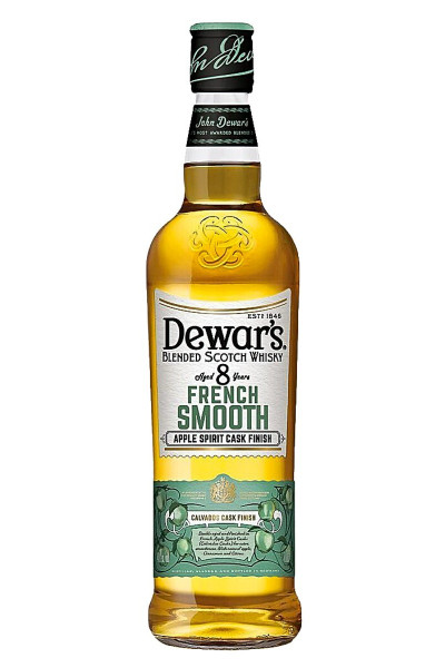 Dewars 8 Years French Smooth is een zachte amberkleurige blended whisky afkomstig uit Schotland. Deze whisky heeft na zijn dubbele rijpingsproces van acht jaar nog eens een finish ondergaan op voormalig calvados vaten. Dit proces geeft deze whisky een zeer sterk fruitig karakter, beginnend bij de vloeiende tonen van appel, Calvados en de verfrissende noten van citrus vruchten. Dewars 8 Years French Smooth heeft een alcoholpercentage van 40%.
